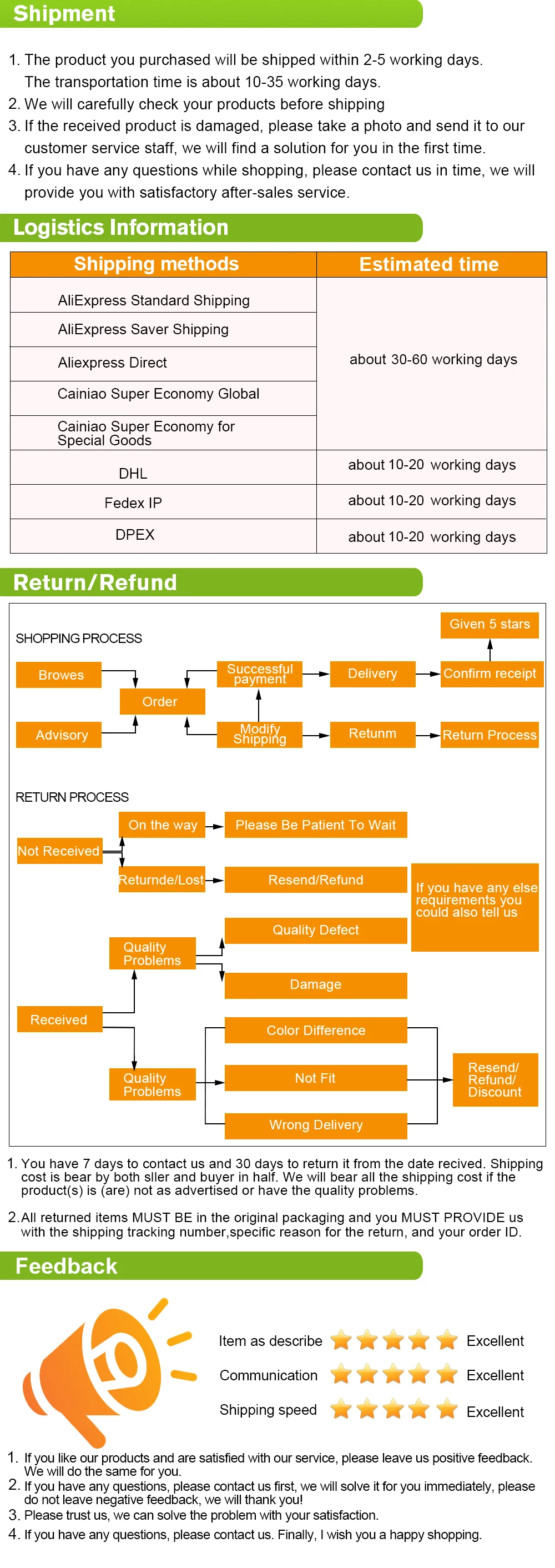 4.Fast shipping,we are trying our best to send all orders in 48 hours.